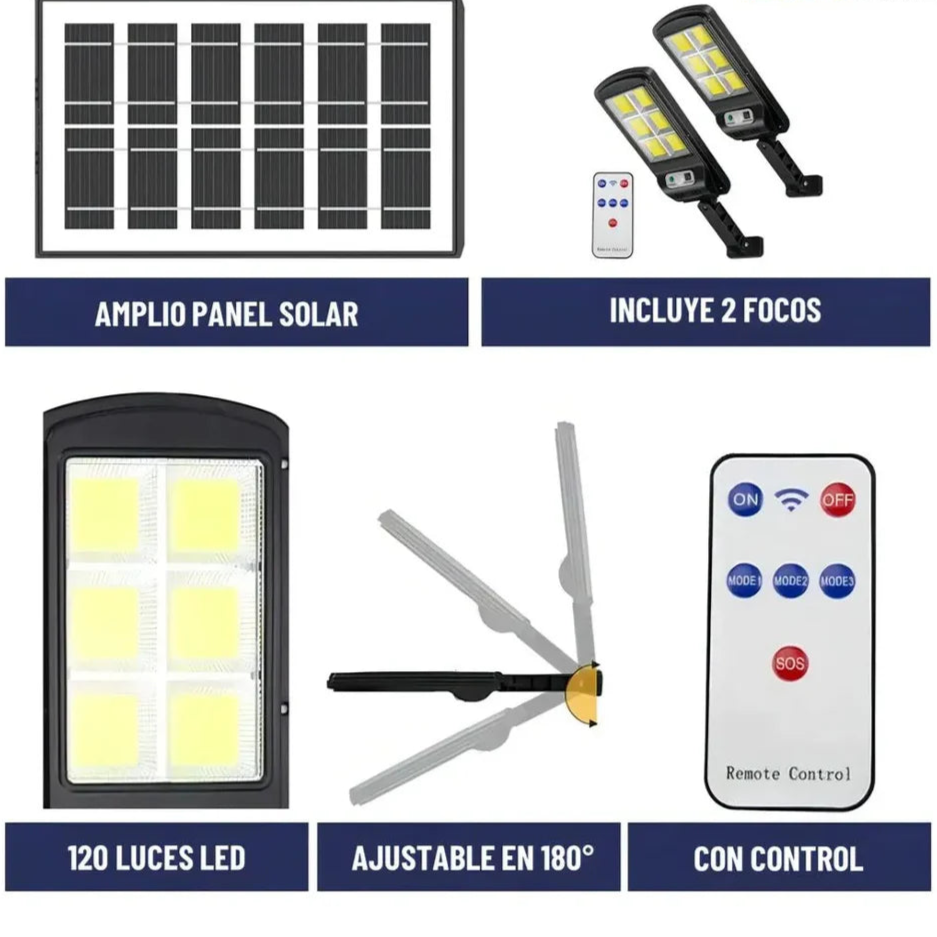 Cada foco cuenta con 120 LEDs que ofrecen una iluminación potente y de amplio alcance, perfecta para cualquier espacio exterior. -
